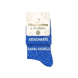 Affiche ton humour et ton caractère avec nos chaussettes paillettes bleues avec l’inscription “Attachante casse-couille”.
